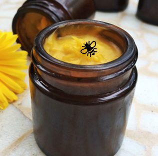 갈색 병에 노란 연고재질의 물질이 있네요.